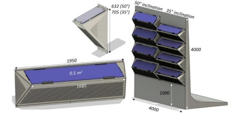 Հետազոտական թիմը ստեղծել է երկու զիգզագաձև կոնֆիգուրացիաներով 4 մ x 4 մ չափերով ցուցադրական նմուշ՝ հարավ-հարավարևմուտք ուղղվածությամբ: Համակարգի համար օգտագործել են ութ արևային մոդուլներ, որոնք տրամադրվել են բելգիական Soltech արտադրողի կողմից: Աղմուկը կլանող նյութը տրամադրել է գերմանական Rockwool ընկերությունը։ Մոդուլները տեղակայվել են 35-ից 50 աստիճան թեքության անկյան տակ: