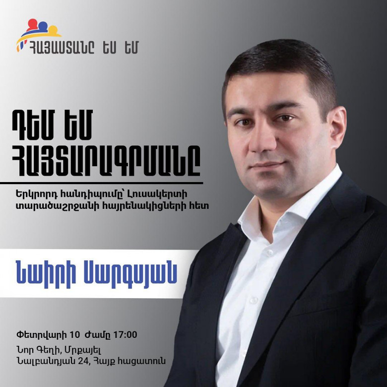 «Հայաստանը ես եմ» նախաձեռնության ղեկավար Նաիրի Սարգսյանը վաղը կհանդիպի Լուսակերտի տարածաշրջանի բնակիչների հետ