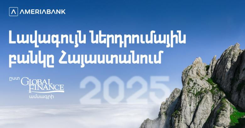 Ամերիաբանկը ճանաչվել է 2025թ. լավագույն ներդրումային բանկը Հայաստանում՝ ըստ Global Finance ամսագրի