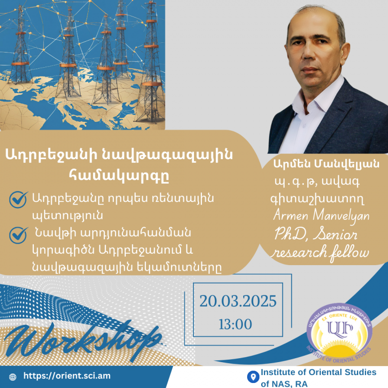 ՔաղաքականությունԳԱԱ Արևելագիտության ինստիտուտի Միջազգային հարաբերությունների բաժնում տեղի ունեցավ աշխատաժողով՝ «Էներգետիկ աշխարհաքաղաքականությունը միջազգային համակարգում» խորագրով, որի շրջանակներում բանախոսեց ԱԻ ավագ գիտաշխատող Արմեն Մանվելյանը: Վերջինս անդրադարձ կատարեց էներգետիկ աշխարհաքաղաքականության ուսումնասիրության մեթոդաբանությանը: