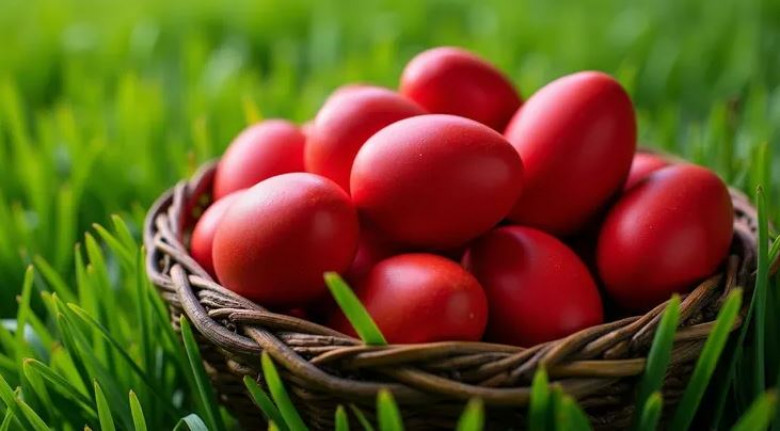 Մեկ այլ ավանդույթ է ձվերը կարմիր ներկելը՝ օգտագործելով բնական բաղադրիչներ, ինչպիսիք են սոխի կեղևները: Դրա համար անհրաժեշտ է ամանի մեջ ձվերը եփել սոխի կեղևի հետ միասին, որը ձվի կճեպին տալիս է ցանկալի երանգ։