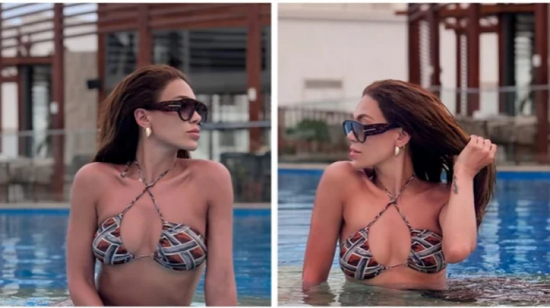 Էվան երկու կտորից կազմված լողազգեստով է, կադրերում նա ժպտում է լողավազանի ներսից։