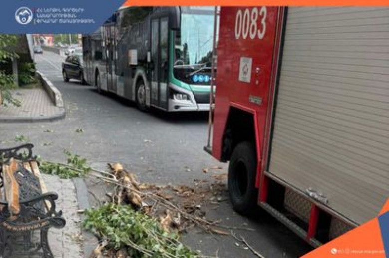ՀասարակությունՀունիսի 30-ին, ժամը 16:42-ին, Ճգնաժամային կառավարման ազգային կենտրոն ահազանգ է ստացվել, որ Խանջյան փողոցում ծառը կոտրվել և ընկել է քաղաքացու վրա: