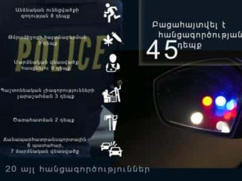 Մեկ օրում բացահայտվել է 45 հանցագործություն, որից 4-ը՝ նախկինում կատարված