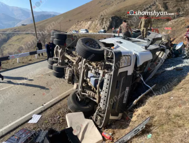Բերդ-Ճամբարակ ճանապարհին «SHACMAN» բեռնատարը դուրս է եկել երթևեկելի գոտուց և կողաշրջվել