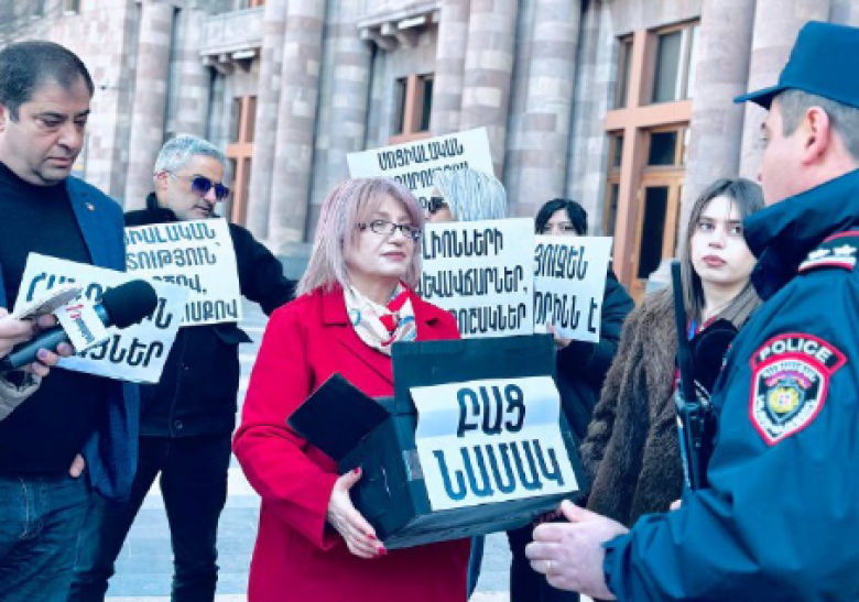Սև արկղով բողոքի ակցիա ՀՀ կառավարության դիմաց Քաղաքականություն 5 Մարտ, 2026 14:09 Կիսվել «Համահայկական ճակատ» շարժման տելեգրամյան ալիքը գրում է. «Համահայկական ճակատ» շարժման անդամները նորից բարձրաձայնում են միլիոնների պարգևավճարների և ընտրություններին ընդառաջ թոշակների բարձրացման մասին: Կիսվել