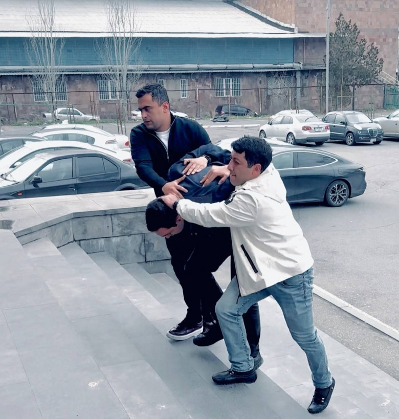 Ահա այս ձևով հենց նոր բերման ենթարկեցին Համայնքային ոստիկանության գլխ. վարչության կենտրոնական բաժին Դավիթ Մինասյանին` այսօր սրբ. Աննա եղեկեցում տեղի ունեցած միջադեպի մասնակցին: