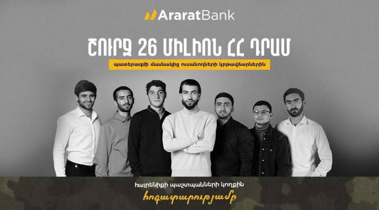 The Foundation's beneficiaries, veterans of the Armenian Army, continue to contribute to our country's development – now through education. Since the beginning of this collaboration, AraratBank has invested AMD 25,946,400 in the program. A number of successful charitable events have been featured within the initiative.
