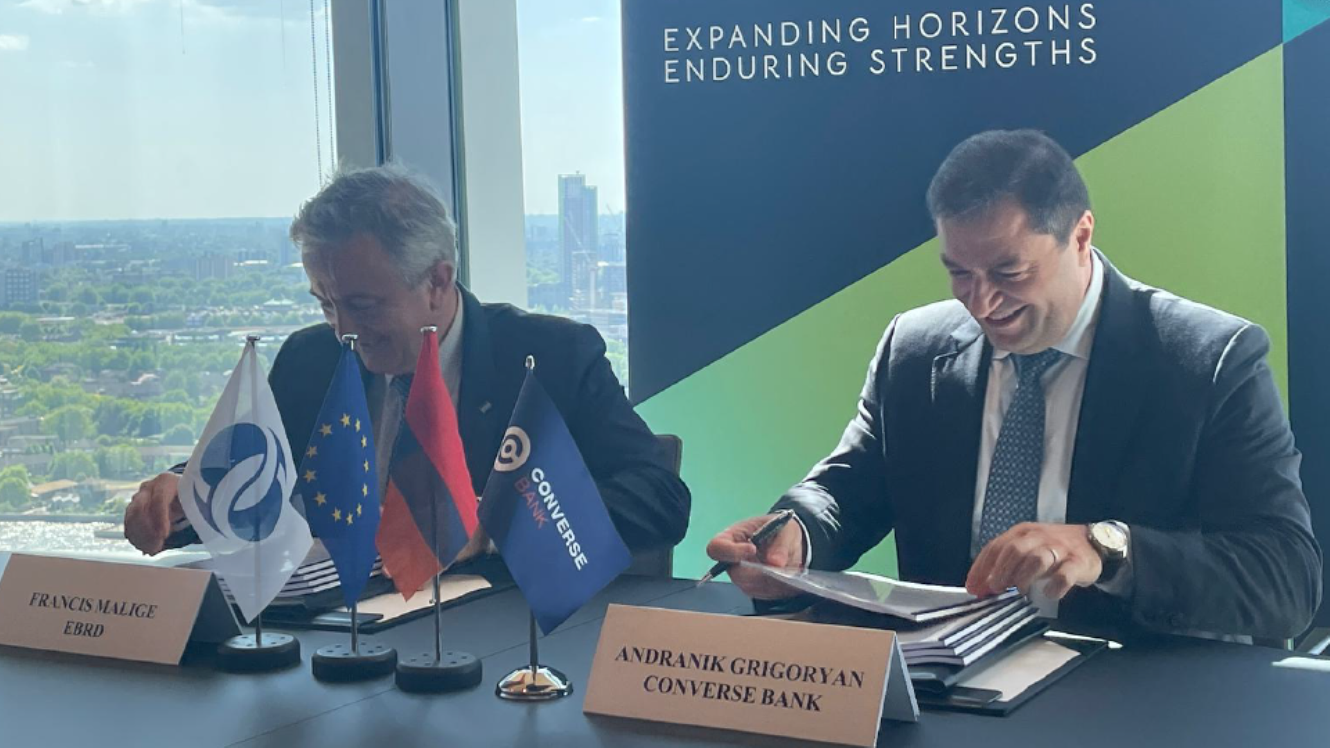 The agreements were signed by Francis Malige, EBRD Managing Director for Financial Institutions, and Andranik Grigoryan, Chief Executive Officer of Converse Bank.