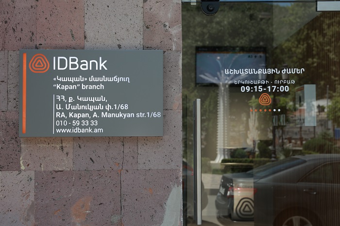 The "Kapan” branch is located at 1/68, A. Manukyan Street. Currently, IDBank has branches in Yerevan, Echmiadzin, Vanadzor, Gyumri, Abovyan, Hrazdan, Armavir, Artashat and Kapan.