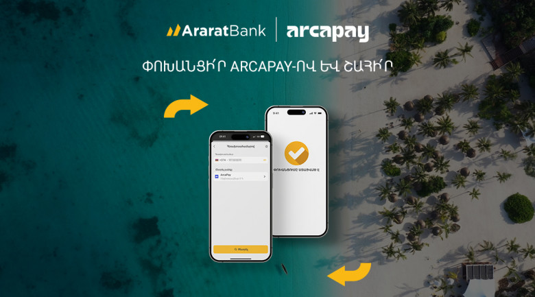 Interbank transfers via ArcaPay with the AraratMobile app are made with 0% commission.