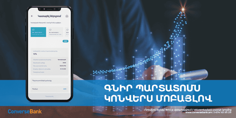 ЭкономикаОблигации Конверс Банка теперь доступны и в Мобильном приложении Банка. За считанные минуты пользователь может пройти весь процесс покупки облигаций, от открытия счета ценных бумаг до заключения контракта. Вся информация о выпуске облигаций также доступна в Мобильном приложении Банка. Для приобритения облигаций необходимо войти в раздел заявок с главной страницы Приложения, нажав кнопку +, затем войти на страницу «Сделать инвестицию» и следовать последующим инструкциям. Следует отметить, что в настоящее время Конверс Банк размещает именные купонные облигации общим объемом 2 млрд драмов и 10 млн долларов США.Купонный доход по облигациям составляет 10% и 4% соответственно, периодичность выплаты купона – раз в полгода. Подробности Выпуска и размещения, а также окончательные условия размещения и Программный проспект можно найти перейдя по ссылке https://www.conversebank.am/en/2022issue/. После размещения облигации будут включены в листинг ОАО "Фондовая биржа Армении" для торгов на вторичном рынке. Денежные средства, привлеченные посредством облигаций, гарантированы Фондом гарантирования возмещения вкладов. Инвестиции в облигации не облагаются налогом и налогом на прибыль нерезидента. Дополнительную информацию об облигациях можно получить по телефонам (374 10) 511 211 (1224), (374 10) 511 206 , (374 10) 511 247,(374 10) 511 248 или написать по электронной почте[email protected], [email protected] Банк контролируется Центральным банком РА.