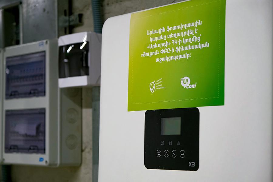 ОбществоВ рамках сотрудничества компании Ucom и общественной организации Sunchild была установлена солнечная электростанция мощностью 10,44 кВт для недавно построенного детского сада в общине Арени марза Вайоц Дзор.