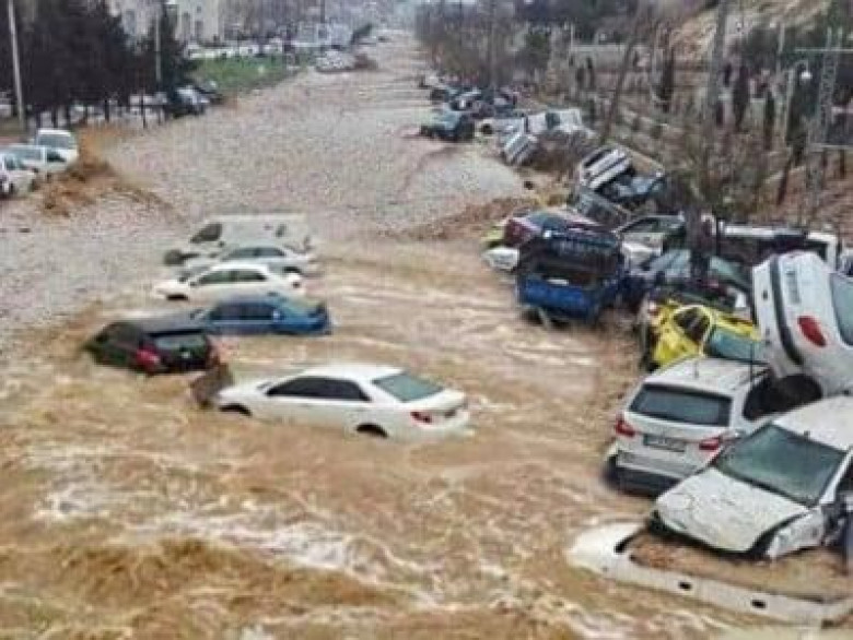 После проливных дождей дороги превратились в реки, потоп смыл автомобили.