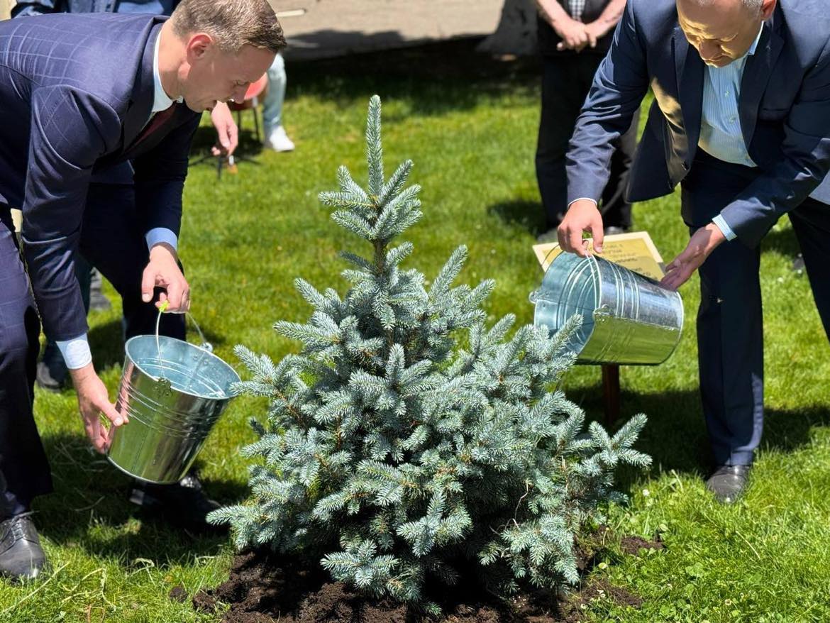 В завершение церемонии под музыку струнного квартета главы городов-побратимов сообща посадили ель , как символ дружбы, которая пускает корни, крепнет и с каждым годом становится только сильнее.