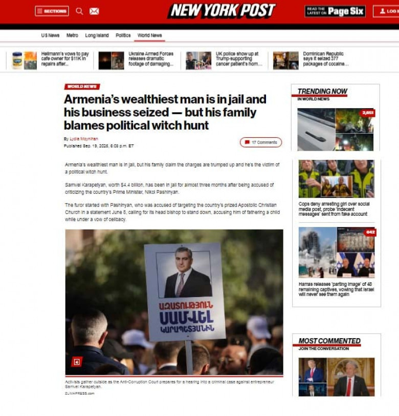 Американские СМИ в основном коснулись незаконного задержания состоятельного человека и филантропа Самвела Карапетяна, а также нападения пашиняновской власти на Армянскую Апостольскую Церковь, заключения в тюрьму двух священников.