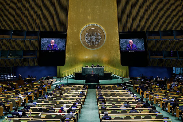 «Президент Азербайджана несколько раз, в том числе с этой трибуны, использовал выражение «Зангезурский коридор», такого выражения нет и никогда не было в документах». Об этом с трибуны ООН заявил Никол Пашинян. Телеграм-канал «Площадь Республики» считает, что Пашинян работает на электорат, противодействуя Алиеву, но на самом деле Пашинян и ГД являются лоббистами турецко-азербайджанских интересов: Арцах был сдан с Еревана.