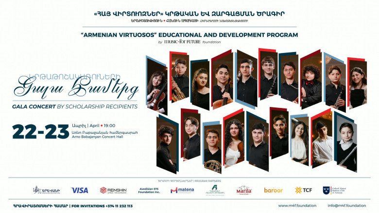 Любители классической музыки 22 и 23 апреля в 19: 00 в концертном зале Арно Бабаджаняна смогут посетить выпускной гала-концерт стипендиатов образовательной и развивающей программы «Армянские виртуозы» фонда «Музыка во имя будущего». Юные музыканты выступят с уникальным отчетным концертом, в ходе которого представят свой музыкальный прогресс и личностное развитие.